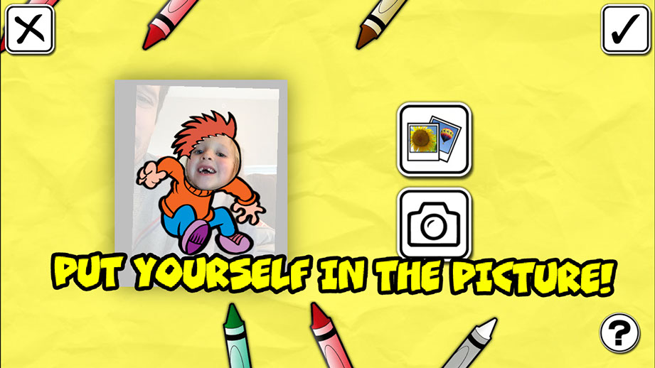 Use special photo stickers to put yourself – or friends and family – into your scenes.