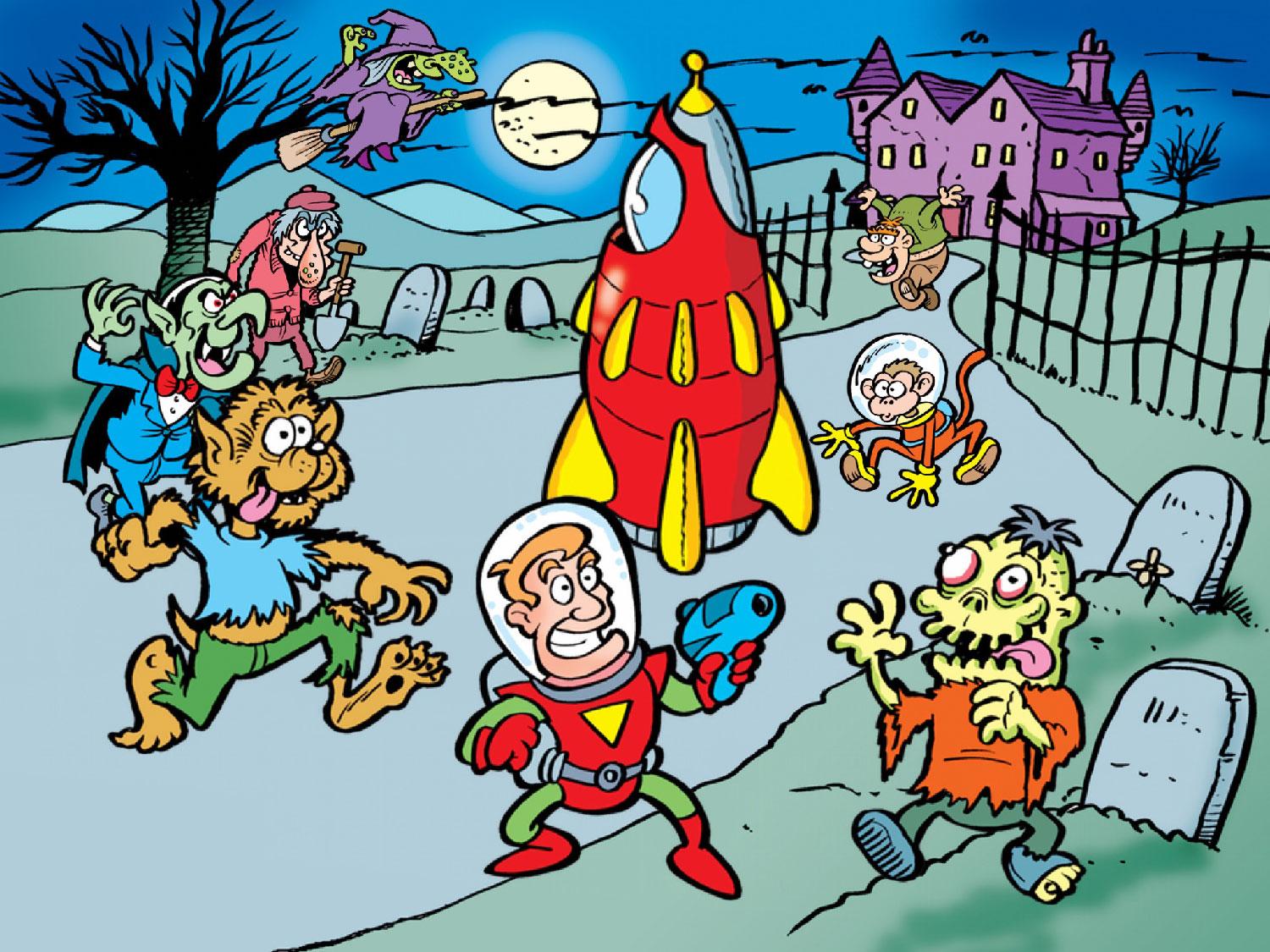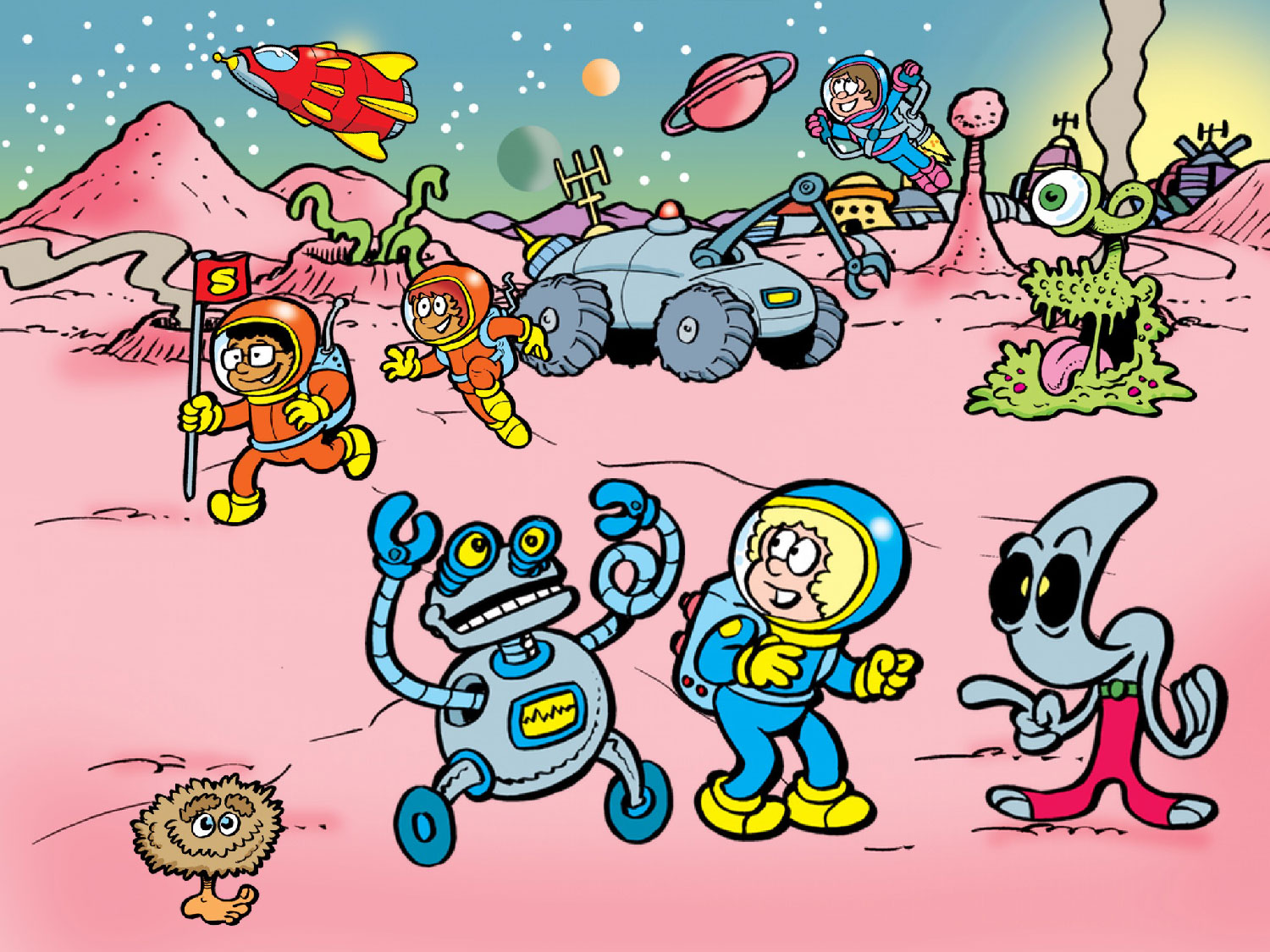 Sticker artwork by legendary UK comic artist Lew Stringer (The Beano, Buster, Oink).